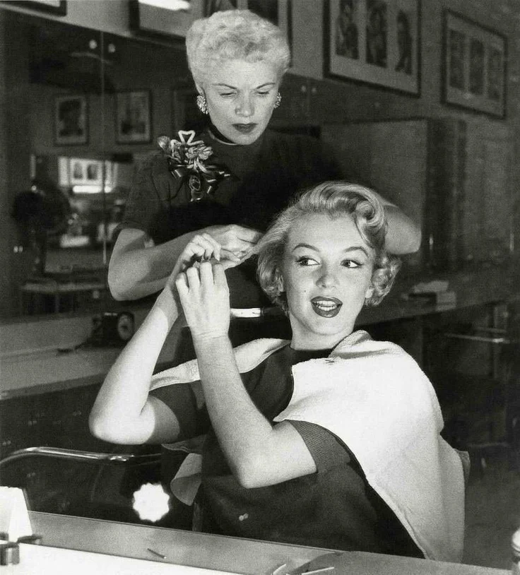 Here some cool pictures of Marilyn doing her hair. Love this wave longer look...